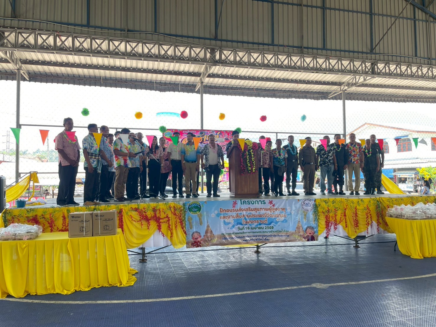 วันพฤหัสบดีที่ 16 เมษายน 2569 เทศบาลตำบลโป่งน้ำร้อน ร่วมกับชมรมผู้สูงอายุบ้านทับไทร ได้จัดโครงการฝึกอบรมส่งเสริมสุขภาพผู้สูงอายุ และสืบสานประเพณีวัฒนธรรมวันสงกรานต์ โดยมีผู้สูงอายุภายในเขตเทศบาลตำบลโป่งน้ำร้อนเข้าร่วม จำนวน 200 คน